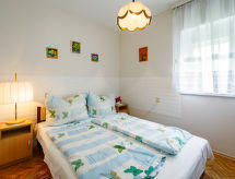 5 -sobna kuća 90 m2 na 2 etaže. Komforno uređena: dnevni boravak/blagovaona s TV-om sa sat. prijemnikom. Izlaz na terasu. 1 soba s 2 kreveta. 1 soba s 1 franc. krevetom (160 cm). Kuhinja (3 ploče za kuhanje, pećnica, mikrovalna pećnica). Tuš/WC. Gornji kat: 2 sobe, svaka soba s 2 kreveta. Izlaz na balkon. Kada/WC. Balkon 16 m2, balkon 8 m2. Garnitura za sjedenje, vrtni roštilj (prijenosni). Parking (ograđen, 3 automobila). MA21003124- Aktivnosti u blizini