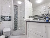 "Sun & Snow apartament Delux dla 4 osób", 2 -sobni apartman 40 m2. Dnevno-spavaća soba s 1 kaučem za 1 osobu i TV-om sa sat. prijemnikom. 1 soba s 2 kreveta. Otvorena kuhinja (pećnica, perilica za suđe, 1 Indukcione ploče, toster, kuhalo za vodu, mikrovalna pećnica, el. aparat za kavu). Tuš/WC. Grijanje, grijanje na naftu. Balkon. Na raspolaganju: glačalo, sušilo za kosu. Internet (wireless LAN [WLAN]).- postrojenja