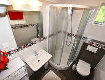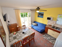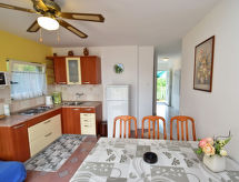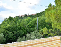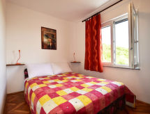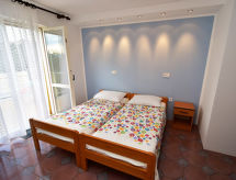 4 -sobni apartman 52 m2 na 1. katu. Dnevni boravak/blagovaona 17 m2 s 1 kaučem za 1 osobu, TV-om sa sat. prijemnikom i klima uređajem. Izlaz na terasu. 1 soba s 1 franc. krevetom (150 cm, dužina 200 cm). 1 mala soba s 1 franc. krevetom (140 cm, dužina 200 cm). 1 soba s 2 kreveta (80 cm, dužina 200 cm). Izlaz na terasu. Kuhinjska niša (4 ploče za kuhanje). 2 x tuš/WC. Velika terasa 20 m2, prema jugu. Garnitura za sjedenje. Vrlo lijep pogled na more. Na raspolaganju: Internet (wireless LAN [WLAN], besplatan). Maks. popunjenost: 6 osoba.- postrojenja