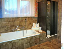 "Daheim (PZT385)", 16 -sobna kuća 322 m2 na 4 etaže. Rustikalno i udobno uređena: veliki dnevni boravak/blagovaona s TV-om sa sat. prijemnikom i radiom. Izlaz na terasu. Blagovaona s 1 bračnim krevetom i kuhinjskim blokom. Izlaz na terasu. 3 sobe, svaka soba s 1 krevetom i 1 bračnim krevetom. 1 bračna soba. Prolazna soba s 1 bračnim krevetom. Kuhinja (pećnica, perilica za suđe, 8, toster, kuhalo za vodu, mikrovalna pećnica, el. aparat za kavu) s kutom za blagovanje. Kada/tuš, tuš, 2 x odv. WC. Gornji kat: 2 bračne sobe. Izlaz na balkon. 1 bračna soba. Veliko predsoblje. Kuhinja/dn. boravak (pećnica, perilica za suđe, 4 staklokeramičke ploče za kuhanje, toster, kuhalo za vodu, mikrovalna pećnica, el. aparat za kavu) s kutom za blagovanje, TV-om sa sat. prijemnikom i radiom. Izlaz na balkon. Kada/tuš, odv. WC. 3. Gornji kat predsoblje, bez prozora s 1 kaučem za 1 osobu, TV-om sa sat. prijemnikom i radiom. Mala prolazna soba s 1 kaučem za 1 osobu. 1 mala soba s (145 cm), 1 rasklopnim franc. zidnim krevetom za 2 osobe. 1 mala bračna soba, bez prozora. Kuhinja/dn. boravak (4 ploče za kuhanje, toster, kuhalo za vodu, mikrovalna pećnica, el. aparat za kavu) s kutom za blagovanje. Izlaz na balkon. 2 x tuš/WC. 2 balkona, 2 terase. Na raspolaganju: visoka dječja stolica, dječji krevetić. Internet (wireless LAN [WLAN], besplatan). Dodatna informacija: kuća za nepušače. Zasebne stambene jedinice nisu interno povezane. Katovi nisu interno povezani. U slučaju boravka manjeg broja gostiju od maksimalnog kapaciteta objekta, neće biti na raspolaganju sve smještajne jedinice.- Značajke smještaja