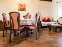 Obiteljska kuća "Danica (PZN260)", na 2 kata. 1 km od centra mjesta Jakačići, 10 km od centra mjesta Pazin, 35 km od mora. Za samostalno korištenje: parcela 400 m2 (ograđena) - travnjak i drveće, bazen pravokutni (6 x 3 m, 150 cm dubok, sezonska dostupnost: 01.May. - 01.Oct.) s unutarnjim stepenicama. Vanjski tuš, terasa, vrtna garnitura za sjedenje, roštilj. U kući: pristup internetu, perilica za rublje. Parking (za 2 automobila) uz kuću na parceli. Trgovina 1 km, supermarket 10 km, stjenovita plaža 35 km. Dio kuće je zatvoren i ne koristi se.Interior