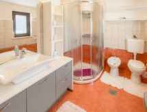 4 -sobna kuća 100 m2. Dnevni boravak/blagovaona s 1 kaučem za 1 osobu, TV-om sa sat. prijemnikom i klima uređajem. Izlaz na terasu. 1 soba s 1 bračnim krevetom. 1 soba s 2 kreveta. 1 soba s 1 krevetom. Otvorena kuhinja (2 ploče za kuhanje, perilica za suđe, toster, mikrovalna pećnica, zamrzivač, el. aparat za kavu). Tuš/WC, odv. WC. Terasa 15 m2. Garnitura za sjedenje, ležaljke. Na raspolaganju: perilica za rublje, glačalo. Internet (wireless LAN [WLAN], besplatan). Dodatna informacija: kuća za nepušače.- postrojenja