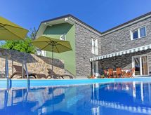 4 -sobna kuća 165 m2 na 2 etaže, prema jugu. Dnevni boravak/blagovaona 28 m2 s TV-om sa sat. prijemnikom (plosnatim TV ekranom), klima uređajem. 1 soba s 1 franc. krevetom (180 cm, dužina 200 cm), kadom/bidetom/WC-om. 1 soba s 2 kreveta (90 cm, dužina 200 cm), tušem/bidetom/WC-om. Otvorena kuhinja (4 ploče za kuhanje, pećnica, perilica za suđe, mikrovalna pećnica, zamrzivač, el. aparat za kavu). Donji kat: 1 soba s 1 franc. krevetom (180 cm, dužina 200 cm), tušem/bidetom/WC-om. Izlaz na bazen. Blagovaona s otvorenim kaminom i klima uređajem. Izlaz na bazen. Terasa 9 m2 (natkrita). Ležaljke. Pogled na bazen. Na raspolaganju: sef, dječji krevetić. Internet (wireless LAN [WLAN], besplatan). Na gornjoj etaži, tuš/bidet/WC sa ulaznim vratima iz sobe sa 2 kreveta i hodnika.- Aktivnosti u blizini