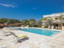 "Daunia", 3 -sobni apartman 90 m2, u prizemlju. Komforno i udobno uređen: dnevno-spavaća soba s 1 kaučem za 2 osobe, stolom za blagovanje i TV-om. Izlaz na terasu. 1 bračna soba. 1 soba s 1 x 2 kreveta na kat. Kuhinjska niša (pećnica, perilica za suđe, 4 plamena za kuhanje, mikrovalna pećnica, zamrzivač). Tuš/bidet/WC. Grijanje, klima uređaj. Grijanje na raspolaganju samo od 01.11. do 31.03. Terasa (natkrita). Garnitura za sjedenje. Na raspolaganju: perilica za rublje, glačalo, mrežice protiv komaraca, sušilo za kosu. Internet (wireless LAN [WLAN], besplatan). Parking (1 automobil). BR07401291000002062- postrojenja