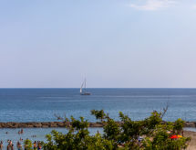 3 -sobni apartman 100 m2 na 1. katu. Renoviran godine 2021, komforno i ukusno uređen: dnevni boravak/blagovaona. Izlaz na balkon. 1 bračna soba s TV-om. Izlaz u vrt. 1 soba s 2 kreveta (90 cm, dužina 200 cm), TV-om. Otvorena kuhinja (perilica za suđe, 4 plamena za kuhanje, toster, kuhalo za vodu, mikrovalna pećnica, el. aparat za kavu). Izlaz na balkon. Kada/bidet/WC, tuš/bidet/WC. Grijanje na plin, klima uređaj. Grijanje na raspolaganju samo od 15.10. do 30.04. Parketni pod. Terasa 20 m2, vrtna terasa 30 m2. Balkonski namještaj. Vrlo lijep panoramski pogled na more. Na raspolaganju: perilica za rublje. Internet (wireless LAN [WLAN]). Dodatna informacija: vlastiti ulaz. CITRA:008056-LT-0193- Aktivnosti u blizini