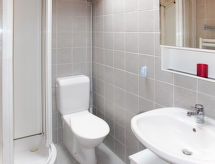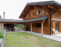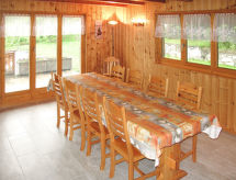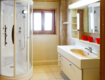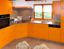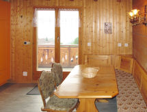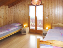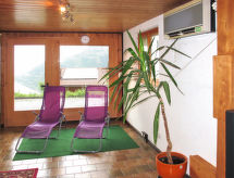 7 -sobni chalet 150 m2 na 3 etaže. Udobno i s puno drva uređen: 2 sobe, svaka soba s 1 bračnim krevetom. Tuš/WC. Gornji kat: dnevni boravak/blagovaona s kabelskom TV, radiom i DVD-om. Izlaz na balkon. Otvorena blagovaona s stolom za blagovanje. Izlaz na terasu. Kuhinja (pećnica, perilica za suđe, 4 staklokeramičke ploče za kuhanje, toster, kuhalo za vodu, mikrovalna pećnica, el. aparat za kavu, raclette roštilj, set za fondue (sir)) s malim stolom za blagovanje. Odv. WC. Potkrovlje 1 soba s 2 kreveta. Izlaz na balkon. 1 soba s 1 bračnim krevetom. Izlaz na balkon. 1 soba s 1 bračnim krevetom. 2 x tuš/WC. El. grijanje, podno grijanje. 2 balkona, terasa (natkrita). Garnitura za sjedenje, vrtni roštilj. Na raspolaganju: perilica za rublje, sušilica, sauna. Internet (wireless LAN [WLAN], besplatan). Dodatna informacija: apartman za nepušače. U slučaju boravka manjeg broja gostiju od maksimalnog kapaciteta objekta, neće biti na raspolaganju sve spavaće sobe.- postrojenja