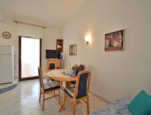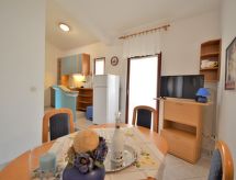 "Denise (MDN126)", 3 -sobni apartman 54 m2 na 1. katu. Dnevni boravak/blagovaona s 1 kaučem za 1 osobu i klima uređajem. Izlaz na lođu. 1 soba s 1 franc. krevetom (160 cm). 1 soba s 2 kreveta. Otvorena kuhinja (2 ploče za kuhanje, toster, kuhalo za vodu, mikrovalna pećnica, zamrzivač, el. aparat za kavu). Tuš/WC. Klima uređaj (uz doplatu). Balkonski namještaj, lođa. Djelomičan pogled na more. Na raspolaganju: Internet (wireless LAN [WLAN], besplatan). Parking (natkrit, 1 automobil). Dodatna informacija: apartman za nepušače.- postrojenja