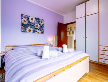 2 -sobni apartman 50 m2, u povišenom prizemlju. Svrsishodno i udobno uređen: dnevno-spavaća soba s 2 ležaja i TV-om sa sat. prijemnikom. Izlaz u vrt, na balkon. 1 bračna soba. Izlaz u vrt, na balkon. Kuhinja/dn. boravak (pećnica, perilica za suđe, Plinski štednjak, 4 plamena za kuhanje, toster, kuhalo za vodu, mikrovalna pećnica, zamrzivač, el. aparat za kavu) s stolom za blagovanje. Tuš/bidet/WC. Grijanje na plin. Balkon. Balkonski namještaj. Pogled na planine i krajolik. Na raspolaganju: visoka dječja stolica, dječji krevetić (uz doplatu). Internet (wireless LAN [WLAN], besplatan). Dodatna informacija: apartman za nepušače. 1 kućni ljubimac / pas dozvoljen. Na licu mjesta nema naplate dodatnih troškova, osim boravišne pristojbe. Posteljina, završno čišćenje i troškovi energije su uključeni u cijenu. CIPAT: 022032-AT-056640- postrojenja