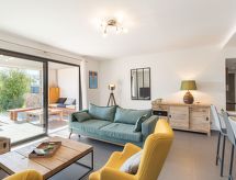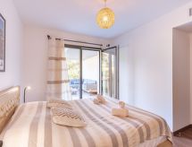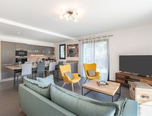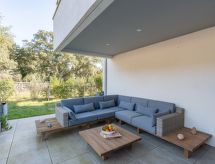 4 -sobni apartman 110 m2, u prizemlju. Komforno i moderno uređen: dnevni boravak/blagovaona s TV-om (plosnatim TV ekranom). Izlaz na terasu. 1 soba s 1 franc. krevetom (160 cm, dužina 200 cm), tušem. Izlaz u vrt. 1 soba s 1 franc. krevetom (160 cm, dužina 200 cm). Izlaz na terasu. 1 soba s 2 kreveta (90 cm, dužina 190 cm). Izlaz u vrt. Otvorena kuhinja (4 ploče za kuhanje, pećnica, perilica za suđe, toster, kuhalo za vodu, mikrovalna pećnica, el. aparat za kavu, Doze za mašinu za kavu (Nespresso) uz doplatu). Tuš/WC, odv. WC. Klima uređaj. 2 terase 20 m2, mala vrtna terasa 40 m2. Garnitura za sjedenje, električni roštilj, ležaljke (4). Na raspolaganju: perilica za rublje. Internet (wireless LAN [WLAN], besplatan). Parking br. 772/773 (uz doplatu, 2 automobila). Dodatna informacija: apartman prema parkingu. Apartman za nepušače. Protupožarni alarm.- Značajke smještaja