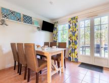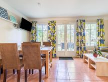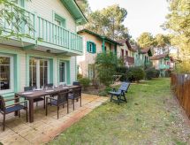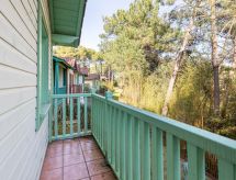 Turističko naselje "Domaine Golf Resort", okruženo drvećem. U samom mjestu 2 km od centra mjesta Lacanau ocean, 2 km od mora, 3 km od jezera, 2 km od plaže, na golf terenu. Za zajedničko korištenje: bazen grijani, ograđen (400 m2, sezonska dostupnost: 01.May. - 30.Sep. bazen je otvoren u vremenu: 10:00-19:45). Bazen za djecu, dječje igralište. U kompleksu: recepcija, perilica za rublje (za zajedničko korištenje, uz doplatu). Parking. Trgovina 2 km, supermarket 2 km, najam bicikli 300 m, pješčana plaža "Plage des Ecureuils" 4 km, jezero Du Moutchic 6 km. Golf teren (18 rupa) 500 m, škola jedrenja na dasci 2 km, tenis 500 m, jahanje konja 12 km, biciklistička staza 200 m. U blizini: Bordeaux 60 km, Saint Emilion 60 km, Dune du Pyla 60 km.Interior