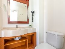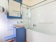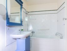 "Merlot 11", 4 -sobna polovica dvojne kuće 56 m2 na 2 etaže. Komforno uređena: dnevni boravak/blagovaona s 1 kaučem za 1 osobu (90 cm, dužina 190 cm), stolom za blagovanje i TV-om (plosnatim TV ekranom). Izlaz na terasu. 1 dječja soba s 1 x 2 kreveta na kat (80 cm, dužina 190 cm). Otvorena kuhinja (perilica za suđe, 4 staklokeramičke ploče za kuhanje, toster, kuhalo za vodu, mikrovalna pećnica, el. aparat za kavu). Kada/WC. El. grijanje. Gornji kat: 1 soba s 1 franc. krevetom (140 cm, dužina 190 cm), TV-om (plosnatim TV ekranom). Izlaz na balkon. 1 soba s 2 kreveta (90 cm, dužina 190 cm). Tuš/WC. Terasa 15 m2, prema istoku. Garnitura za sjedenje. Pogled na golf igralište. Na raspolaganju: Internet (wireless LAN [WLAN], uz doplatu). Dodatna informacija: prikladno za obitelji. Protupožarni alarm.- Aktivnosti u blizini