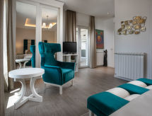 Premantura 11 km od mjesta Pula: Lijepa vila "Dream house", na 2 kata, godina izgradnje 2019. 250 m od centra mjesta Premantura, sunčano mjesto, 500 m od mora, 500 m od plaže. Za samostalno korištenje: parcela 950 m2 (ograđena), mali vrt - bilje, bazen grijani (36 m2, 140 cm dubok, sezonska dostupnost: 25.Apr. - 03.Oct.) s unutarnjim stepenicama. Nepravilan oblik bazena. Vanjski tuš, vrtna garnitura za sjedenje, roštilj. U kući: pristup internetu, prostorija za fitnes, biljar, stolni nogomet, centralno grijanje, klimatizacija, perilica za rublje. Kuhar moguć (uz doplatu). Parking (za 6 automobila) uz kuću na parceli. Trgovina 250 m, supermarket 4.5 km, restoran 150 m, šljunčana plaža 2.5 km, stjenovita plaža 500 m. Golf teren 600 m, škola jedrenja na dasci 2.5 km, tenis 750 m, jahanje konja 10 km, pješačke staze od kuće 20 m, biciklistička staza 25 m. U blizini: Nature park Kamenjak 650 m. Moguće je na upit organizirati transfer od aerodroma do objekta. Bazen grijani (uz doplatu). Potrebno je 7 dana unaprijed najaviti ukoliko se želi grijanje bazena. Prostorija za fitnes s tušem/WC-om i izlazom u vrt (uključeno u cijenu). Mogućnost izleta i transfera do aerodroma (sve na upit, uz doplatu). Grupe mladih polažu pri dolasku dvostruki depozit.Interior