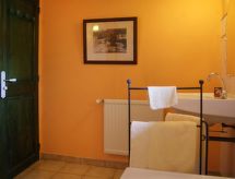 4 -sobna kuća u nizu 95 m2 na 2 etaže. Lijepo uređena: dnevni boravak s TV-om (plosnatim TV ekranom), videom i radiom. Izlaz u vrt. Blagovaona. Kuhinja (4 ploče za kuhanje, pećnica, perilica za suđe, mikrovalna pećnica, zamrzivač). Tuš, odv. WC. Gornji kat: galerija. 1 soba s 1 franc. krevetom (140 cm, dužina 190 cm). 1 soba s 2 kreveta (110 cm, dužina 190 cm). Kada/WC. Grijanje na plin. Garnitura za sjedenje, vrtni roštilj, ležaljke (2). Pogled na planine i dolinu. Na raspolaganju: perilica za rublje, dječji krevetić do 2 godine. Parking uz kuću. Najviše 1 kućni ljubimac / pas dozvoljen.- Značajke smještaja