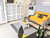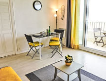 Residence "Edouard VII", na 5 kata. U četvrti Milady, u samom mjestu 1.5 km od centra mjesta Biarritz, sunčano mjesto, 50 m od mora, 100 m od plaže, direktan pristup na plažu. Za zajedničko korištenje: park 2 ha, prekrasan vrt za opuštanje, bazen ograđen (8 x 12 m, sezonska dostupnost: 15.Jun. - 15.Sep.). Tenis (2 x tvrda podloga). U kompleksu: dizalo. Parking (ograničen broj mjesta). Trgovina 400 m, trgovina živežnim namirnicama 900 m, supermarket 3 km, restoran 400 m, pekara 900 m, autobusna postaja "Thermes Marins" 300 m, željeznička postaja "La Négresse" 2.8 km, pješčana plaža "Plage de La Milady" 100 m, termalno kupalište "Thalmar" 100 m. Golf teren (9 rupa) 1 km, škola jedrenja na dasci 100 m, minigolf 2 km, jahanje konja 1 km. U blizini: Cité de l'Océan 400 m, Marché des Halles 2 km, Aquarium de Biarritz 2.6 km, Bayonne 12 km, Saint-Jean-de-Luz 13 km, San-Sebastian, Espagne 49 km. Pješačke staze: Sentier du Littoral 100 m, La Rhune 21 km. Dodatna informacija: preporučljiv vlastiti prijevoz. Residence s električnom kapijom. Ključeve ćete preuzeti u turističkoj agenciji INTERHOME u mjestu Biarritz, 3 km. Mogućnost rezerviranja dodatnih smještajnih jedinica.Interior