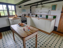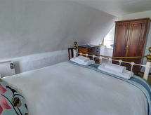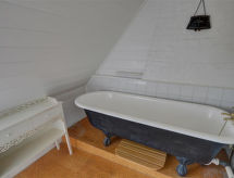 5 -sobna polovica dvojne kuće na 2 etaže. Svrsishodno i lijepo uređena: dnevni boravak s otvorenim kaminom, plosnatim TV ekranom, radiom, CD-om i DVD-om. Blagovaona s peći na drva. Kuhinja (4 ploče za kuhanje, pećnica, zamrzivač). Odv. WC. Gornji kat: 1 soba s 1 franc. krevetom. 1 soba s 1 krevetom. 1 soba s 1 franc. krevetom. Kada/WC. El. grijanje, grijanje na drva. Vrt, travnjak. Garnitura za sjedenje. Lijep pogled na krajolik i rijeku. Na raspolaganju: perilica za rublje. Internet (wireless LAN [WLAN]). Parking uz kuću. Dodatna informacija: kuća za nepušače. Najviše 1 mali kućni ljubimac / pas dozvoljen.- postrojenja