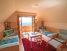 5 -sobna obiteljska kuća 160 m2 na 2 etaže. Vrlo komforno i stilski uređena: veliko predsoblje. Dnevni boravak s TV-om sa sat. prijemnikom, plosnatim TV ekranom, muzičkom linijom, DVD-om i kaljevom peći. Izlaz na terasu. Velika kuhinja (pećnica, perilica za suđe, 4 staklokeramičke ploče za kuhanje, mikrovalna pećnica, zamrzivač) s stolom za blagovanje, TV-om sa sat. prijemnikom. Izlaz na terasu. Odv. WC. Gornji kat: 1 soba s 1 bračnim krevetom i TV-om sa sat. prijemnikom. Izlaz na balkon. 1 velika soba s 1 krevetom, 1 bračnim krevetom, tušem/WC-om, TV-om sa sat. prijemnikom i radiom. 1 soba s 2 kreveta. Izlaz na balkon. Kada/tuš, odv. WC, duplim umivaonikom. Parketni pod. 2 balkona, velika terasa. Garnitura za sjedenje, balkonski namještaj, vrtni roštilj, ležaljke, ostava. Prekrasan panoramski pogled na krajolik. Na raspolaganju: perilica za rublje. Internet (wireless LAN [WLAN], besplatan). Dodatna informacija: apartman za nepušače. Protupožarni alarm, vatrogasni aparat.- Značajke smještaja
