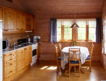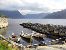 "Eiknes (FJH412)", 4 -sobna kuća 62 m2 na 2 etaže. S puno drva uređena: dnevni boravak/blagovaona s stolom za blagovanje i TV-om sa sat. prijemnikom. 2 sobe, svaka soba s 1 bračnim krevetom. Otvorena kuhinja (4 ploče za kuhanje, pećnica, kuhalo za vodu, mikrovalna pećnica, zamrzivač, el. aparat za kavu). Tuš/WC. El. grijanje. Gornji kat: (ljestve) s kosim stropom, otvorena galerija s 2 kreveta. Terasa. Garnitura za sjedenje, vrtni roštilj (prijenosni), ostava. Prekrasan pogled na more i planine. Na raspolaganju: perilica za rublje. Dodatna informacija: protupožarni alarm, vatrogasni aparat.- postrojenja