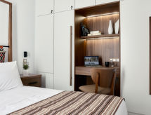Moderni, lijepi turistički kompleks "Volta Suites & Villas", na 2 kata, zasebni. 10 apartmana u kući. U četvrti Kato Gouves, mirno, sunčano mjesto, 650 m od mora, 650 m od plaže. Za zajedničko korištenje: lijepi, njegovani vrt - cvijeće i drveće, travnjak za sunčanje, bazen pravokutni (110 m2, 130- 140 cm dubok, sezonska dostupnost: 01.May. - 31.Oct.). Vanjski tuš, roštilj. Parking uz kuću. Trgovina živežnim namirnicama, supermarket, restoran, bar, pekara, cafe 500 m, pješčana plaža "Gouves Beach" 650 m. Golf teren (18 rupa) 12.9 km, jahanje konja 11.6 km. U blizini: Labyrinth Park 11.4 km, Watercity Waterpark 8.2 km, Lychnostatis Museum 16.7 km, Minoan Palace of Knossos 20.4 km, Nikos Kazantzakis Museum 29.8 km, CRETAquarium 2.2 km. Dodatna informacija: preporučljiv vlastiti prijevoz. Prikladno za obitelji. Grupe mladih samo na upit. Slika je samo jedan primjer. Mogućnost rezerviranja dodatnih smještajnih jedinica.Interior