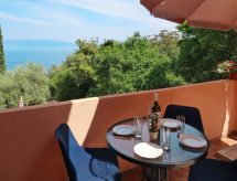 "Elsa (LBN109)", 2 -sobni apartman 65 m2 na 1. katu. Dnevni boravak/blagovaona s 1 kaučem za 2 osobe (160 cm), TV-om sa sat. prijemnikom (plosnatim TV ekranom), klima uređajem. Izlaz na balkon. 1 soba s 1 franc. krevetom (160 cm). Otvorena kuhinja (2 ploče za kuhanje, pećnica, perilica za suđe, 2 plamena za kuhanje, toster, kuhalo za vodu, mikrovalna pećnica, el. aparat za kavu). Tuš/bidet/WC. Balkon. Balkonski namještaj. Pogled na more. Na raspolaganju: Internet (wireless LAN [WLAN], besplatan). Dodatna informacija: apartman za nepušače.- postrojenja