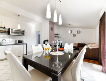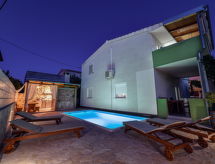 Kuća s 2 apartmana "Ema", na 2 kata. U četvrti Bili Brig, 3.2 km od centra mjesta, sunčano mjesto, 2.4 km od mora, 2.4 km od plaže. Za samostalno korištenje: parcela 315 m2 (ograđena), bazen pravokutni (6 x 3 m, 135 cm dubok, sezonska dostupnost: 27.Apr. - 28.Sep.) s unutarnjim stepenicama. Vanjski tuš, vrtna garnitura za sjedenje, roštilj. U kući: pristup internetu, perilica za rublje. Parking (za 2 automobila) uz kuću na parceli. Trgovina 300 m, restoran 680 m, šljunčana plaža 2.4 km. Tenis 2.2 km. Grupe mladih nisu dozvoljene.Interior