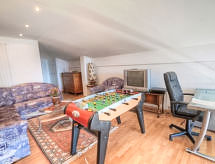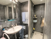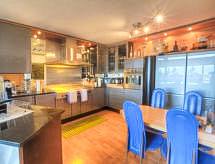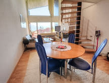 4 -sobni apartman na 2 nivoa 157 m2 na 4. katu. Prostrano i svijetlo, komforno uređen: dnevni boravak/blagovaona s otvorenim kaminom, odv. WC-om i kabelskom TV. Izlaz na balkon, prema jugu. 1 velika soba s 1 bračnim krevetom (2 x 90 cm, dužina 200 cm), kadom/WC-om i hidromasažna kada. Izlaz na balkon, prema sjeveru. 1 soba s 1 bračnim krevetom (2 x 90 cm, dužina 200 cm), tušem. Izlaz na balkon, prema sjeveru. Velika, otvorena kuhinja (2 ploče za kuhanje, pećnica, perilica za suđe, 2 Indukcione ploče, mikrovalna pećnica, gril, el. aparat za kavu, Doze za mašinu za kavu (Nespresso) uz doplatu). Gornji kat: soba za igru s 1 kaučem za 1 osobu (140 cm, dužina 190 cm), kabelskom TV. 1 soba s 1 bračnim krevetom (160 cm, dužina 200 cm), kadom. Izlaz na balkon, prema sjeveru. Balkonski namještaj. Vrlo lijep pogled na planine. Dodatna informacija: apartman za nepušače.- Značajke smještaja