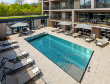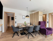 Kaprun: Moderni, komforni stambeni objekt "Emma Deluxe Aparthotel", na 3 kata. 16 apartmana u residenceu. U četvrti Fürth 2.5 km od centra mjesta Kaprun, odlična pozicija: u samom centru, a ipak mirno. Za zajedničko korištenje: bazen grijani (9 x 4 m, 130 cm dubok, sezonska dostupnost: 01.Jan. - 31.Dec.). U kući: recepcija, restoran, bar, sala za doručak, sauna, parna kupelj, prostorija za relaksaciju, wellness, spremište za bicikle, spremište za skije, centralno grijanje, perilica za rublje, sušilica (za zajedničko korištenje), grijač za skijašku obuću. Doručak (uklj.). Zimi molimo ponijeti lance za snijeg. Parking uz kuću. Punionica za električna vozila. Supermarket 2 km, autobusna postaja "nach Kaprun und Zell am See" 50 m, željeznička postaja "Zell am See" 7 km, termalno kupalište "Tauern Spa Kaprun" 1.3 km, jezero za kupanje "Zeller See" 7 km. Golf teren (36 rupa) 3 km, gondola 2.6 km, staza za skijaško trčanje 500 m. Poznata skijališta u blizini: Schmittenhöhe 4 km, Maiskogel- Kitzsteinhorn 2.5 km. Dodatna informacija: besplatan ski bus Gratis skibus za skijalište Kaprun und Zell am See. Slika je samo jedan primjer.Interior