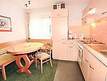 3 -sobni apartman 85 m2 na 2 etaže. Ukusno i udobno uređen: 2 bračne sobe. Izlaz na terasu. Kuhinja (4 ploče za kuhanje, pećnica, perilica za suđe) s stolom za blagovanje. Kada/tuš, odv. WC. Gornji kat: (kružne stepenice) s kosim stropom dnevni boravak s TV-om sa sat. prijemnikom i radiom. Terasa 28 m2. Garnitura za sjedenje. Lijep pogled na planine i krajolik. Na raspolaganju: Internet (wireless LAN [WLAN], besplatan). Dodatna informacija: apartman za nepušače. Protupožarni alarm.- Značajke smještaja