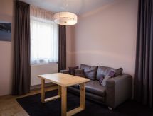 "Enzian", 1 -sobni apartman 30 m2. Moderno i udobno uređen: otvorena dnevno-spavaća soba s 1 bračnim krevetom, kutom za blagovanje, TV-om sa sat. prijemnikom i plosnatim TV ekranom. Kuhinjska niša (perilica za suđe, 4 staklokeramičke ploče za kuhanje, mikrovalna pećnica, el. aparat za kavu). Tuš/WC. Drveni pod. Balkon. Balkonski namještaj. Pogled na planine i krajolik. Na raspolaganju: Internet (wireless LAN [WLAN], besplatan). Dodatna informacija: apartman za nepušače. Protupožarni alarm, vatrogasni aparat. Rezervira se tipski objekt (kuća, apartman) i moguća su manja odstupanja.- postrojenja