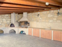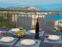 "Eolos", 6 -sobna vila 200 m2 na 2 etaže. Prostrano i svijetlo, vrlo lijepo i stilski uređena: otvoreni dnevni boravak/blagovaona s otvorenim kaminom i TV-om sa sat. prijemnikom (plosnatim TV ekranom). Izlaz na balkon. 1 bračna soba s 1 bračnim krevetom i kadom/WC-om. Izlaz na balkon. 1 bračna soba s 1 kaučem za 2 osobe. Izlaz na balkon. Polukat s 1 bračnim krevetom. Izlaz na balkon. Kuhinja (4 ploče za kuhanje, pećnica, perilica za suđe, mikrovalna pećnica, el. aparat za kavu). Izlaz na balkon. Odv. WC. Klima uređaj. Donji kat: 1 bračna soba s 1 bračnim krevetom. Velika soba za igru s 1 kaučem za 1 osobu. Tuš/WC. Klima uređaj. 4 balkona, vrtna terasa. Balkonski namještaj. Prekrasan panoramski pogled na more i zaljev. Na raspolaganju: perilica za rublje, sef, glačalo, sušilo za kosu. Internet (wireless LAN [WLAN], besplatan). Prikladno za obitelji.- Mjesto