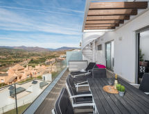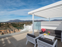"Estepona Sunset", 3 -sobni apartman u potkrovlju 72 m2, u potkrovlju, prema zapadu. Objekt pogodan za 4 odraslih. Svijetlo, moderno i ukusno uređen: dnevni boravak/blagovaona s klima uređajem i grijanjem na topli zrak. Izlaz na terasu, pergola. 1 soba s 1 franc. krevetom (180 cm, dužina 200 cm), kadom/WC-om, umivaonikom, klima uređajem i grijanjem na topli zrak. 1 soba s 2 kreveta (90 cm, dužina 200 cm), umivaonikom, tušem/WC-om, klima uređajem i grijanjem na topli zrak. Otvorena kuhinja (pećnica, 4 staklokeramičke ploče za kuhanje, toster, kuhalo za vodu, mikrovalna pećnica, zamrzivač, el. aparat za kavu). Izlaz na terasu. Gornji kat: (kružne stepenice). Izlaz na terasu. Prirodni kameni pod. Velika terasa 70 m2. Vrlo lijep panoramski pogled na more, bazen, vrt i krajolik. Na raspolaganju: perilica za rublje, glačalo, sušilo za kosu. Internet (wireless LAN [WLAN], besplatan). Parking br. 25. Dodatna informacija: apartman za nepušače, parking samo za male aute. VFT/MA/58371- Značajke smještaja