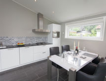 "Pavilion 6", 4 -sobni chalet 75 m2. Komforno uređen: predsoblje s odv. WC-om. Dnevni boravak/blagovaona s stolom za blagovanje i plosnatim TV ekranom. Izlaz na terasu. 3 sobe, svaka soba s 2 kreveta. Otvorena kuhinja (4 ploče za kuhanje, perilica za suđe, el. aparat za kavu, kombinirana mikrovalna pećnica). Tuš. Grijanje. Terasa. Garnitura za sjedenje. Na raspolaganju: Internet (wireless LAN [WLAN], besplatan). Parking (1 automobil) uz kuću. Dodatna informacija: kuća za nepušače. Protupožarni alarm.