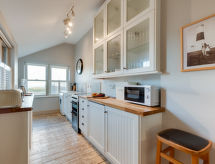 4 -sobna obiteljska kuća na 3 etaže. Svijetlo, komforno i ukusno uređena: dnevni boravak/blagovaona s otvorenim kaminom i TV-om (plosnatim TV ekranom), DVD-om. Izlaz u vrt. Kuhinja (4 ploče za kuhanje, pećnica, perilica za suđe, mikrovalna pećnica, zamrzivač). Odv. WC. Gornji kat: 2 sobe, svaka soba s 1 bračnim krevetom. Kada/tuš/WC. 2. Gornji kat: 1 soba s 1 bračnim krevetom. Vrt. Garnitura za sjedenje, vrtni roštilj, zimski vrt. Pogled u daljini na more. Na raspolaganju: perilica za rublje, sušilica. Internet (wireless LAN [WLAN], besplatan). Parking br. 2. Dodatna informacija: kuća za nepušače. Najviše 2 kućna ljubimca / psa dozvoljena.- Značajke smještaja