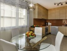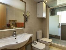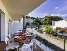 "Fane de baix III", 3 -sobni apartman 65 m2 na 1. katu. Moderno i udobno uređen: dnevni boravak/blagovaona s TV-om sa sat. prijemnikom (plosnatim TV ekranom), klima uređajem i grijanjem na topli zrak. Izlaz na terasu. 1 soba s 1 franc. krevetom (1 x 150 cm), klima uređajem i grijanjem na topli zrak. 1 soba s 2 kreveta (90 cm), klima uređajem i grijanjem na topli zrak. Otvorena kuhinja (pećnica, perilica za suđe, 4 staklokeramičke ploče za kuhanje, toster, kuhalo za vodu, mikrovalna pećnica, el. aparat za kavu). Tuš/bidet/WC. Terasa. Garnitura za sjedenje. Djelomičan pogled na more. Na raspolaganju: perilica za rublje, glačalo. Parking br. 8. Prikladno za obitelji. HUTG020409- postrojenja