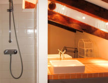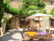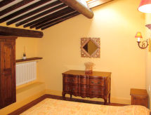 "Terres Ste Hilaire Farigoulette (OLL103)", 5 -sobni apartman 140 m2 na 2 etaže na 1. katu. Ukusno uređen: gornji kat: veliko predsoblje. Dnevni boravak s otvorenim kaminom, stolom za blagovanje i TV-om sa sat. prijemnikom. 1 soba s 2 kreveta (80 cm), tušem. 1 soba s 2 kreveta. Otvorena kuhinja (4 ploče za kuhanje, pećnica, perilica za suđe, toster, mikrovalna pećnica, zamrzivač, el. aparat za kavu). Odv. WC. 2. Gornji kat: 2 sobe s kosim stropom s krovnim prozorom, svaka soba s 2 kreveta (80 cm). Tuš, odv. WC. Grijanje. Drveni pod. Lijep pogled na krajolik. Na raspolaganju: Internet (wireless LAN [WLAN], besplatan). Dodatna informacija: protupožarni alarm.- postrojenja