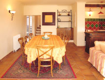 Lijep, rustikalan na vinogradarskom imanju ladanjska kuća "Les Terres de Saint Hilaire", iz 17. stoljeća, renoviran, okružen drvećem, poljima i vinogradima. 10 apartmana u residenceu. 4 km od centra mjesta Ollières, 9 km od centra mjesta Saint Maximin, izvan mjesta, 39 km od centra mjesta Aix-en-Provence, izolirano, sunčano mjesto, u zelenom. Za zajedničko korištenje: parcela 150 ha - bilje i drveće, prirodni vrt, livada, bazen (14 x 7 m, sezonska dostupnost: 01.May. - 30.Sep.). WC uz bazen, stolni tenis, boćalište, terasa, vrtna garnitura za sjedenje, roštilj. U kompleksu: perilica za rublje, sušilica (za zajedničko korištenje, uz doplatu). Parking na parceli. Supermarket 9 km, restoran 5 km. Jahanje konja 500 m. Prodaja domaćih poljoprivrednih proizvoda. Dodatna informacija: Fotografija prikazuje samo tipičan primjer kuće.Interior
