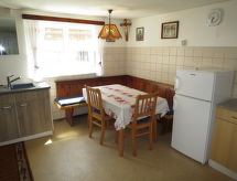 "Fatlar (KPL686)", 5 -sobna kuća 150 m2 na 2 etaže. Rustikalno uređena: dnevni boravak/blagovaona s švedskom peći, stolom za blagovanje, kutom za blagovanje i TV-om sa sat. prijemnikom. 1 soba s 1 krevetom i 1 bračnim krevetom. Kuhinja (pećnica, 4 staklokeramičke ploče za kuhanje, toster, kuhalo za vodu, mikrovalna pećnica, zamrzivač, el. aparat za kavu) s stolom za blagovanje. 3 x tuš/WC. El. grijanje. Gornji kat: 2 sobe, svaka soba s 1 krevetom i 1 bračnim krevetom. 1 soba s 1 krevetom. Drveni pod. Dnevni boravak je uređen u seoskom stilu. Terasa. Garnitura za sjedenje, ležaljke (2). Na raspolaganju: Internet (wireless LAN [WLAN], besplatan). Dodatna informacija: protupožarni alarm, vatrogasni aparat. U slučaju boravka manjeg broja gostiju od maksimalnog kapaciteta objekta, neće biti na raspolaganju sve smještajne jedinice.- postrojenja