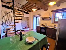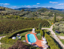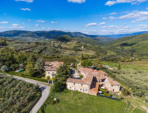 Velik, rustikalan na vinogradarskom imanju ladanjska kuća "Fattoria l'Ottavo", 400 m n.m., iz 18. stoljeća, renoviran, okružen livadama i vinogradima. 3 kuće u residenceu. 9 apartmana u residenceu. U četvrti Lucolena in Chianti 12 km od centra mjesta Greve in Chianti, 13 m od centra mjesta Figline Valdarno, izolirano, sunčano, povišeno mjesto, u zelenom. Za zajedničko korištenje: parcela 40 ha, prirodni vrt, livada, bazen ograđen (8 x 4 m, sezonska dostupnost: 01.May. - 15.Oct. bazen je otvoren u vremenu: 08:00-20:00). Vanjski tuš, terasa, vrtna garnitura za sjedenje, roštilj. Bazen održava vlasnik/vrtlar. U kući: recepcija, restoran, sala za doručak, wireless LAN [WLAN], perilica za rublje (za zajedničko korištenje). Promjena posteljine - 1 puta tjedno. Doručak može na upit (uz doplatu). 200 m dugački uski prilaz autom do parceli. Parking na parceli. Trgovina, trgovina živežnim namirnicama 700 m, supermarket 12 km, trgovački centar 13 km, restoran 1 km, bar, pekara 700 m, najam bicikli 12 km, autobusna postaja "Lucolena" 700 m, željeznička postaja "Figline Valdarno" 13 km, pješčana plaža "Calambrone" 110 km, natkriveni bazen 13 km, jezero Trasimeno 114 km. Golf teren (18 rupa) 20 km, tenis 12 km, jahanje konja 2 km, pješačke staze od kuće 100 m. U blizini: Firenze 37 km, Siena 50 km, Arezzo 54 km, San Gimignano 65 km. Dodatna informacija: preporučljiv vlastiti prijevoz. Radno vrijeme recepcije 10:00-17:00 sati. Prikladno za obitelji, oprema za bebe (uklj.). Prikladno za evente. Prodaja domaćih poljoprivrednih proizvoda. Dodatna informacija: vlasnik živi na istoj parceli. Sve kuće/apartmani su individualno opremljeni.Interior