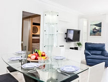 "Fenals Beach", 4 -sobni apartman 84 m2 na 5. katu, prema jugu. Prostrano i svijetlo, moderno i ukusno uređen: dnevni boravak/blagovaona s panoramskim prozorom prema jugu s stolom za blagovanje, digitalnim TV, grijanjem na plin i električnim roletnama. Izlaz na terasu, prema jugu. 1 velika soba s 1 franc. krevetom (150 cm, dužina 190 cm), kadom/bidetom/WC-om. 1 soba s 1 x 2 kreveta na kat (90 cm, dužina 190 cm). 1 bračna soba s 1 franc. krevetom (150 cm, dužina 190 cm). Velika kuhinja (4 ploče za kuhanje, pećnica, perilica za suđe, toster, kuhalo za vodu, mikrovalna pećnica, zamrzivač, el. aparat za kavu). Tuš/WC. Velika terasa. Garnitura za sjedenje. Prekrasan panoramski pogled na more. Na raspolaganju: perilica za rublje, glačalo, dječji krevetić, sušilo za kosu. Internet (wireless LAN [WLAN]). Parking (natkrit, 2 automobila). Prikladno za obitelji. 1 kućni ljubimac / pas dozvoljen. HUTG025195- Značajke smještaja