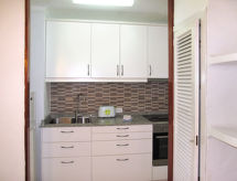 "Ferrera Park (CDO120)", 2 -sobni apartman 55 m2 na 3. katu. Svrsishodno uređen: dnevno-spavaća soba s 1 kaučem za 2 osobe, stolom za blagovanje i TV-om sa sat. prijemnikom. Izlaz na balkon. 1 soba s 2 kreveta. Mala, otvorena kuhinja (pećnica, 3 staklokeramičke ploče za kuhanje, mikrovalna pećnica, zamrzivač, el. aparat za kavu). Tuš/WC. Bez grijanja. Balkon 5 m2. Balkonski namještaj. Lijep pogled na more. Na raspolaganju: perilica za rublje, visoka dječja stolica, dječji krevetić. Dodatna informacija: apartman za nepušače. APM857- postrojenja