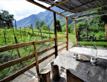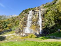 "Fienile nel Vigneto", 2 -sobni apartman 40 m2 na 2 etaže, u povišenom prizemlju. Potpuno renoviran godine 2019, stilski i s puno drva uređen: otvorena dnevno-spavaća soba s 1 kaučem za 1 osobu. Izlaz u vrt, na terasu. Kuhinjska niša (2 plamena za kuhanje). Donji kat: 1 otvorena bračna soba s peći na drva. Tuš/bidet/WC. Grijanje. Drveni pod. Garnitura za sjedenje. Vrlo lijep panoramski pogled na planine, dolinu i Cascate dell' Acquafraggia. Na raspolaganju: sušilo za kosu, drvo (uz doplatu). Dodatna informacija: apartman za nepušače. Najviše 1 kućni ljubimac / pas dozvoljen. Vlastiti ulaz.- postrojenja