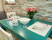 Kuća s 3 apartmana "Fila". U četvrti Borik, 3 km od centra mjesta, mirno mjesto, 200 m od mora. Za zajedničko korištenje: vrt (ograđen) - bilje i cvijeće. Roštilj. U kući: pristup internetu, Bicikle na raspolaganju. (uz doplatu). Parking uz kuću. Trgovina 100 m, restoran 200 m, pješčana plaža 500 m šljunčana plaža, plaža s oblucima 200 m, kupalište 500 m. Sportski centar 500 m. Dodatna informacija: U istoj kući iznajmljuju se dodatni apartmani. Apartmani su u stražnjem dijelu kuće.Interior