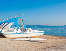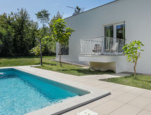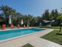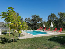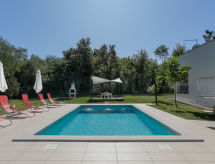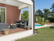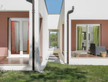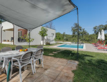 4 -sobna kuća 90 m2. Lijepo uređena: dnevni boravak/blagovaona s otvorenim kaminom i TV-om sa sat. prijemnikom (plosnatim TV ekranom), klima uređajem. Izlaz na terasu. 1 soba s 1 franc. krevetom (160 cm, dužina 200 cm). Izlaz na terasu. 2 sobe, svaka soba s 1 franc. krevetom (160 cm, dužina 200 cm). Otvorena kuhinja (4 ploče za kuhanje, pećnica, perilica za suđe, mikrovalna pećnica, zamrzivač, el. aparat za kavu). Tuš/bidet/WC. 2 terase 10 m2 (natkrite). Garnitura za sjedenje, ležaljke. Pogled na bazen. Na raspolaganju: dječji krevetić, sušilo za kosu. Internet (wireless LAN [WLAN], besplatan).- postrojenja