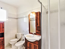 "Formula 1", 3 -sobni apartman 80 m2, u prizemlju. Dnevni boravak/blagovaona s 1 kaučem za 2 osobe i TV-om sa sat. prijemnikom (plosnatim TV ekranom), klima uređajem. 1 bračna soba s klima uređajem. 1 soba s 2 kreveta i klima uređajem. Kuhinja (4 ploče za kuhanje, mini pećnica, perilica za suđe) s stolom za blagovanje. Tuš/bidet/WC. Garnitura za sjedenje, mjesto za sjedenje. Pogled u daljini na more i na grad. 1 kućni ljubimac / pas dozvoljen.- postrojenja