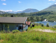 "Fosseblikk (FJS391)", 3 -sobna kuća 55 m2. Svijetlo, rustikalno i udobno uređena: dnevni boravak/blagovaona s švedskom peći, stolom za blagovanje i TV-om sa sat. prijemnikom. Izlaz na terasu. 1 bračna soba s 1 bračnim krevetom (135 cm). 1 soba s 1 x 3 kreveta na kat (120 cm). Otvorena kuhinja (4 ploče za kuhanje, pećnica, perilica za suđe, toster, kuhalo za vodu, mikrovalna pećnica, zamrzivač, el. aparat za kavu). Tuš/WC. El. grijanje, podno grijanje. Terasa (natkrita). Garnitura za sjedenje, vrtni roštilj (prijenosni). Prekrasan panoramski pogled na jezero, planine i krajolik. Na raspolaganju: perilica za rublje. Dodatna informacija: protupožarni alarm, vatrogasni aparat. 924531169- postrojenja