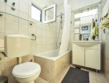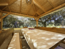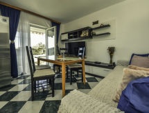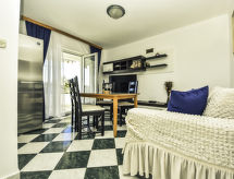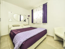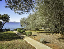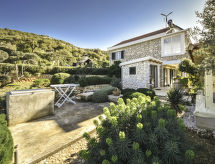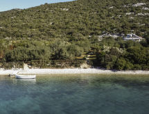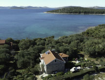 6 -sobna kuća 90 m2 na 2 etaže. Dnevni boravak/blagovaona s TV-om sa sat. prijemnikom (plosnatim TV ekranom). Izlaz na terasu. 2 sobe, svaka soba s 1 franc. krevetom (160 cm, dužina 200 cm). Otvorena kuhinja (4 ploče za kuhanje, zamrzivač). Tuš/WC. Gornji kat: dnevni boravak/blagovaona s TV-om sa sat. prijemnikom (plosnatim TV ekranom). Izlaz na terasu. 2 sobe, svaka soba s 1 franc. krevetom (180 cm, dužina 200 cm). Otvorena kuhinja (3 ploče za kuhanje, zamrzivač). Kada/WC. Terasa 12 m2 (natkrita), terasa 16 m2 (natkrita). Garnitura za sjedenje. Pogled na more. Na raspolaganju: dječji krevetić. 1 kućni ljubimac / pas dozvoljen. Solarna energija (strujni napon 220 V). Snabdijevanje vodom kišnicom iz cisterne.- Značajke smještaja