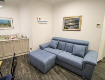 4 -sobni apartman 80 m2, u prizemlju. Lijepo i moderno uređen: dnevni boravak/blagovaona s TV-om sa sat. prijemnikom. 3 bračne sobe, svaka soba s tušem/bidetom/WC-om i TV-om sa sat. prijemnikom. Kuhinjska niša (pećnica, perilica za suđe, 4 Indukcione ploče, kuhalo za vodu, mikrovalna pećnica, zamrzivač, el. aparat za kavu). Klima uređaj, grijanje toplim zrakom. Vrtna terasa 10 m2 (natkrita). Garnitura za sjedenje. Na raspolaganju: perilica za rublje, visoka dječja stolica, dječji krevetić do 2 godine, sušilo za kosu. Internet (wireless LAN [WLAN], besplatan). Dodatna informacija: apartman za nepušače. Vlastiti ulaz. CITRA:010037-AFF-0002- postrojenja