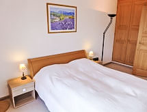 "Gai Matin A 6", 4 -sobni apartman 80 m2 na 1. katu, prema jugu. Lijepo i udobno uređen: dnevni boravak/blagovaona s panoramskim prozorom prema jugu s stolom za blagovanje i TV-om (plosnatim TV ekranom). Izlaz na balkon, prema jugu. 1 soba s 1 franc. krevetom (1 x 160 cm, dužina 200 cm). Izlaz na balkon, prema jugu. 1 soba s 1 x 2 kreveta na kat (90 cm, dužina 200 cm). 1 soba s 2 kreveta na izvlačenje (2 x 90 cm, dužina 200 cm). Kuhinja (pećnica, perilica za suđe, 4 staklokeramičke ploče za kuhanje, mikrovalna pećnica, zamrzivač, el. aparat za kavu, Doze za mašinu za kavu (Nespresso) uz doplatu, raclette roštilj, set za fondue (sir)). Kada/WC, tuš/WC. Balkon, prema jugu. Garnitura za sjedenje. Vrlo lijep panoramski pogled na planine i krajolik. Na raspolaganju: Internet (wireless LAN [WLAN], besplatan). Garaža br. 6. Dodatna informacija: apartman za nepušače.- Značajke smještaja