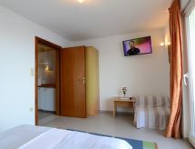 "Galeb (ROZ 105)", 1 -sobni apartman 28 m2 na 3. katu. 1 soba s 1 franc. krevetom, TV-om sa sat. prijemnikom i klima uređajem. Izlaz na balkon. Kuhinja (2 staklokeramičke ploče za kuhanje, toster, kuhalo za vodu, zamrzivač, el. aparat za kavu) s stolom za blagovanje. Tuš/WC. Balkon 10 m2. Balkonski namještaj. Pogled na more. Na raspolaganju: Internet (wireless LAN [WLAN], besplatan). Dodatna informacija: kuća za nepušače.- postrojenja