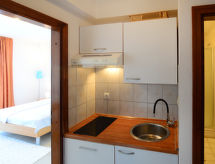 Stambeni objekt "Galeb". 10 km od centra mjesta Rogoznica, 700 m od centra mjesta Ražanj, 10 m od mora, 10 m od plaže. Za zajedničko korištenje: parcela 800 m2 - bilje i drveće, bazen grijani (8 x 4 m, 150 cm dubok, sezonska dostupnost: 01.May. - 01.Oct.) s unutarnjim stepenicama. Vanjski tuš, mjesto za sjedenje, roštilj. U kući: pristup internetu, perilica za rublje, sušilica (za zajedničko korištenje, uz doplatu). Parking uz kuću. Trgovina 30 m, supermarket 700 m, stjenovita plaža 10 m. Dodatna informacija: privatni vez za barku, na upit. Vlasnik živi u istoj kući. Bazen za zajedničko korištenje nalazi se na susjednoj parceli.Interior