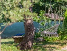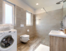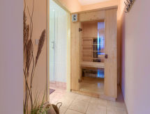 6 -sobna kuća 140 m2 na 2 etaže. Dnevni boravak/blagovaona s TV-om sa sat. prijemnikom (plosnatim TV ekranom), klima uređajem. Izlaz na terasu. 2 sobe, svaka soba s 1 krevetom i 1 franc. krevetom. Mala, otvorena kuhinja (pećnica, perilica za suđe, 4 staklokeramičke ploče za kuhanje, toster, kuhalo za vodu, mikrovalna pećnica, zamrzivač, el. aparat za kavu). 2 x tuš/WC. El. grijanje. Gornji kat: (vanjske stepenice) dnevni boravak/blagovaona s TV-om sa sat. prijemnikom (plosnatim TV ekranom), klima uređajem. Izlaz na balkon. 1 soba s 1 krevetom i 1 franc. krevetom (160 cm). 1 soba s 1 franc. krevetom (160 cm). Kuhinja (pećnica, 4 staklokeramičke ploče za kuhanje, toster, kuhalo za vodu, mikrovalna pećnica, zamrzivač, el. aparat za kavu). Tuš/WC. Balkon, terasa. Garnitura za sjedenje, ležaljke. Na raspolaganju: perilica za rublje, glačalo, visoka dječja stolica, dječji krevetić. Internet (wireless LAN [WLAN], besplatan). Dodatna informacija: kuća za nepušače. 1 kućni ljubimac / pas dozvoljen. Prilikom rezervacije za najviše 6 osoba, 1. kat ostaje zatvoren. 1 spavaća soba u prizemlju sa ulaznim vratima prema tuš/WC-u i sauni. Raspored kreveta je fleksibilan. Dostupno je više mogućnosti za spavanje od maksimalno dopuštenog broja osoba koji se ipak ne smije prekoračiti- postrojenja